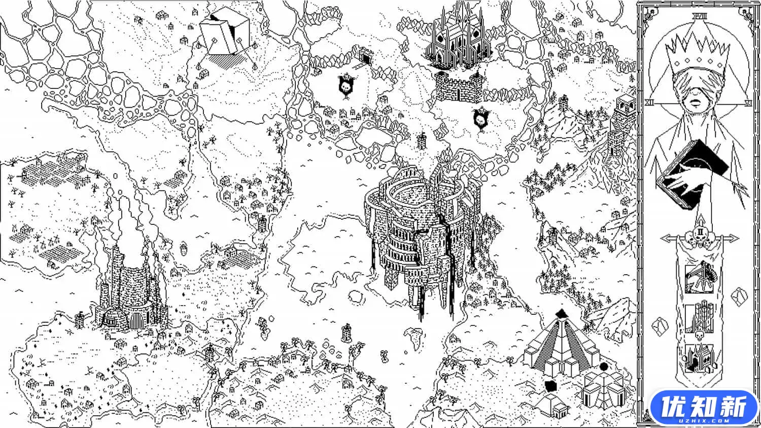 Death Crown是一款1-bit极简风格的实时策略游戏。在这里你将扮演死亡女王,统帅她的亡灵大军,让人类王国为它的狂妄自大付出代价。