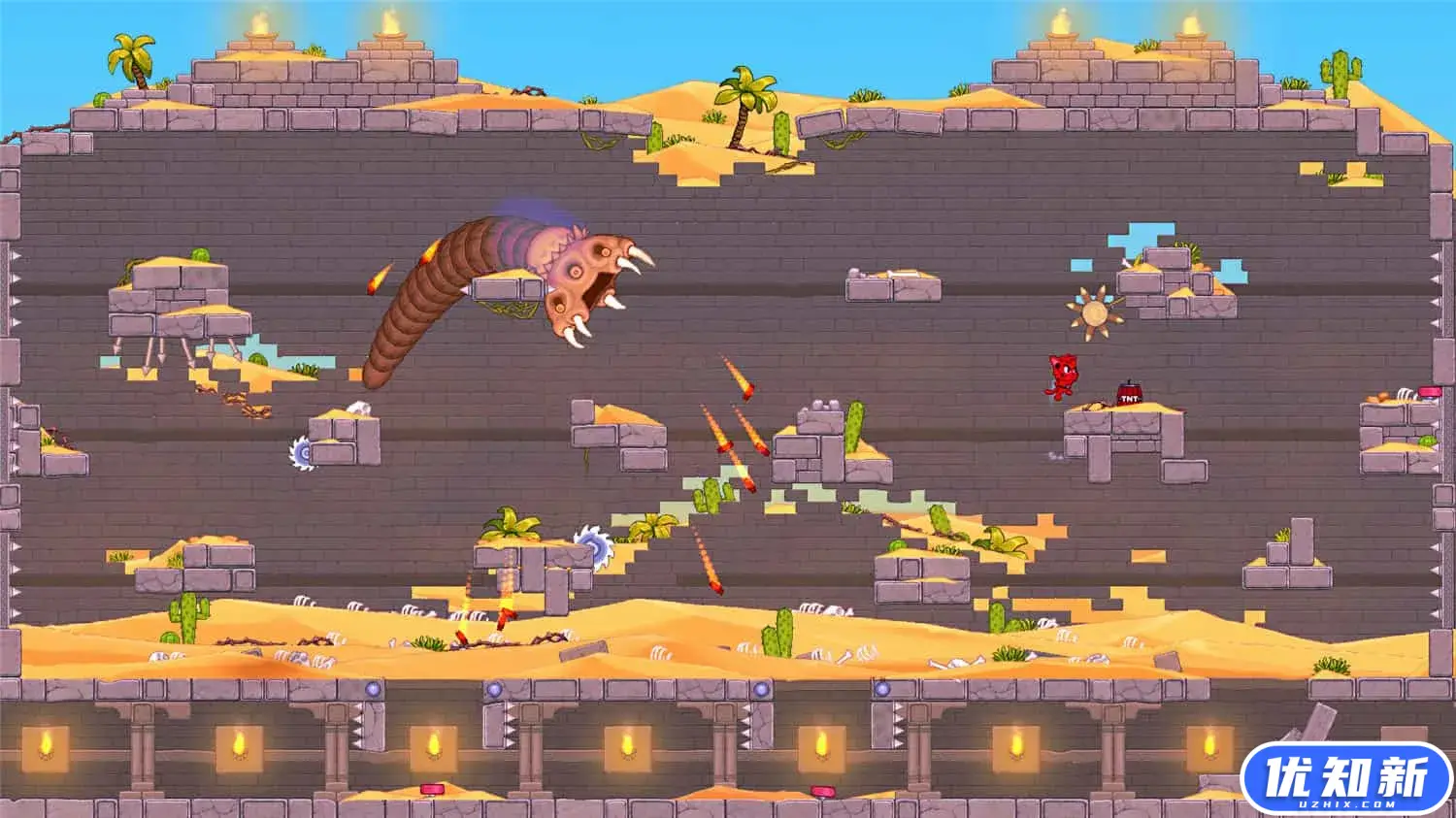 在陷阱世界展开一场冒险。 在致命的关卡中跳跃,滑动,冲刺和躲闪。 寻找秘密,解决难题,解开谜团并解开故事。 单独行动或与朋友一起享受与众不同的合作体验。 1-4名在线玩家和/或分屏。
