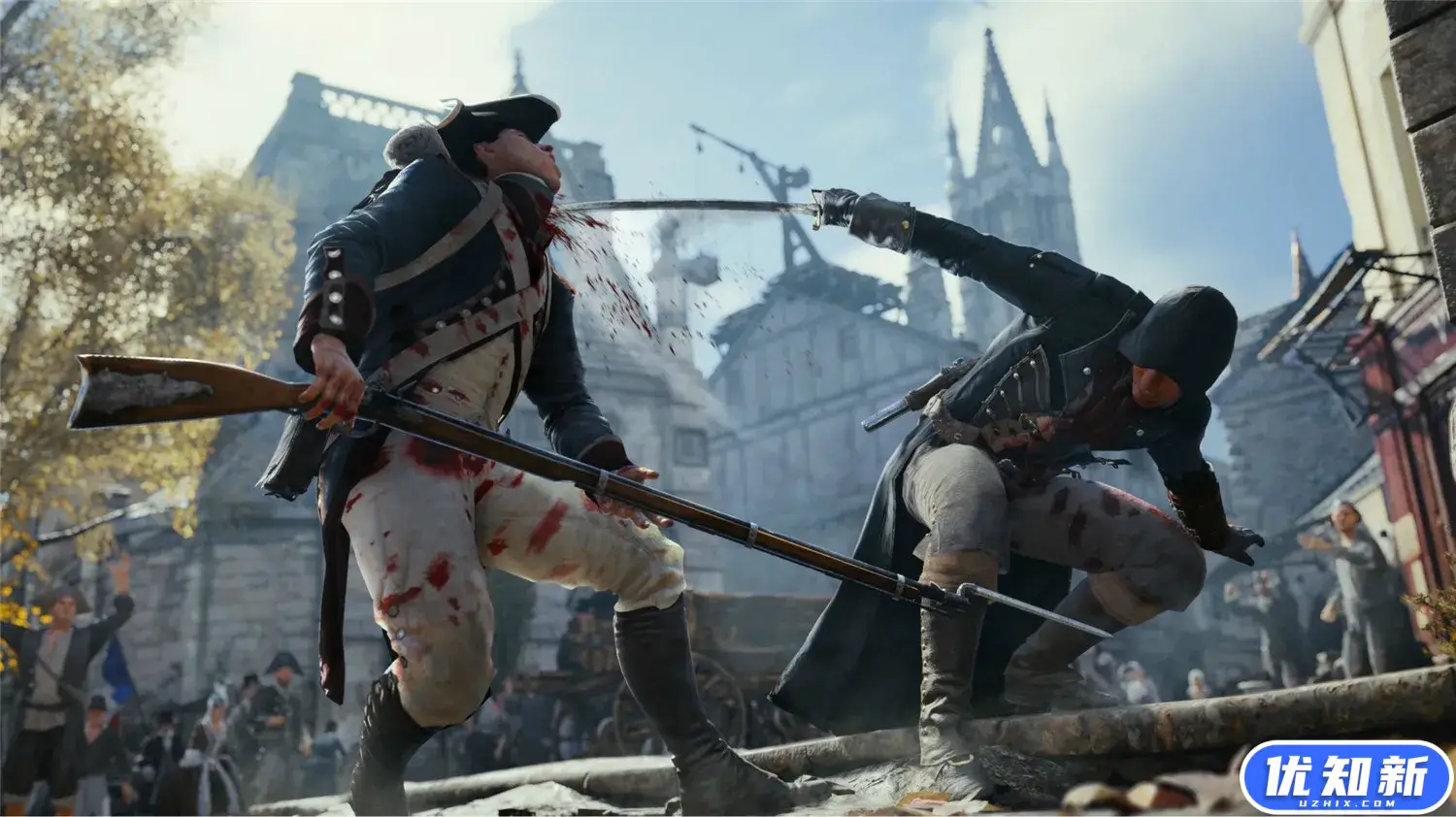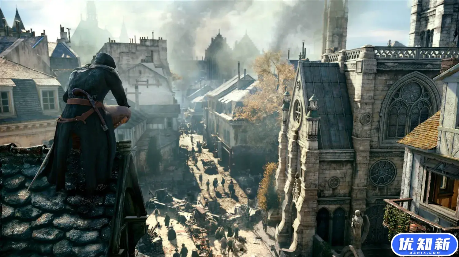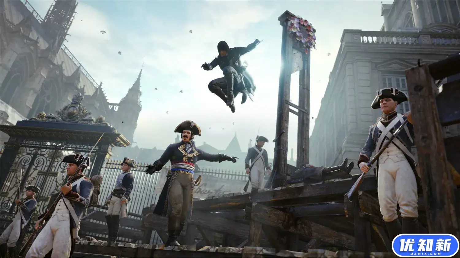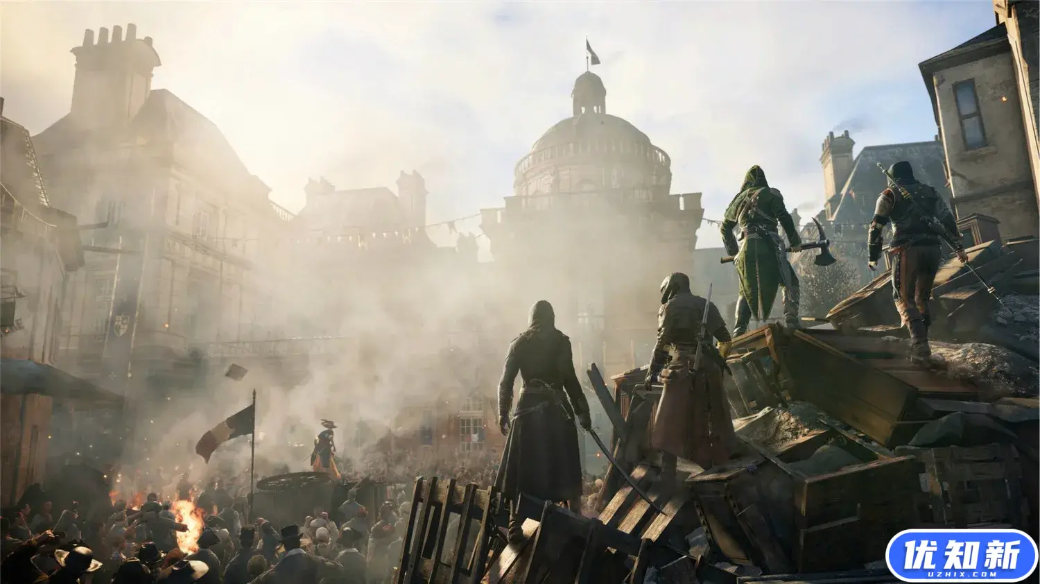 《刺客信条:大革命》游戏的背景设定在18世纪的巴黎,法国大革命时期。藉由新世代绘图硬体呈现更细致写实的场景与角色。本作主角名“亚诺”,来自日耳曼语里的鹰,设定为18世纪的法国,Ezio时代的庄园系统回归,主角将与巴黎刺客兄弟会一同进行战斗,支持4人合作模式。
