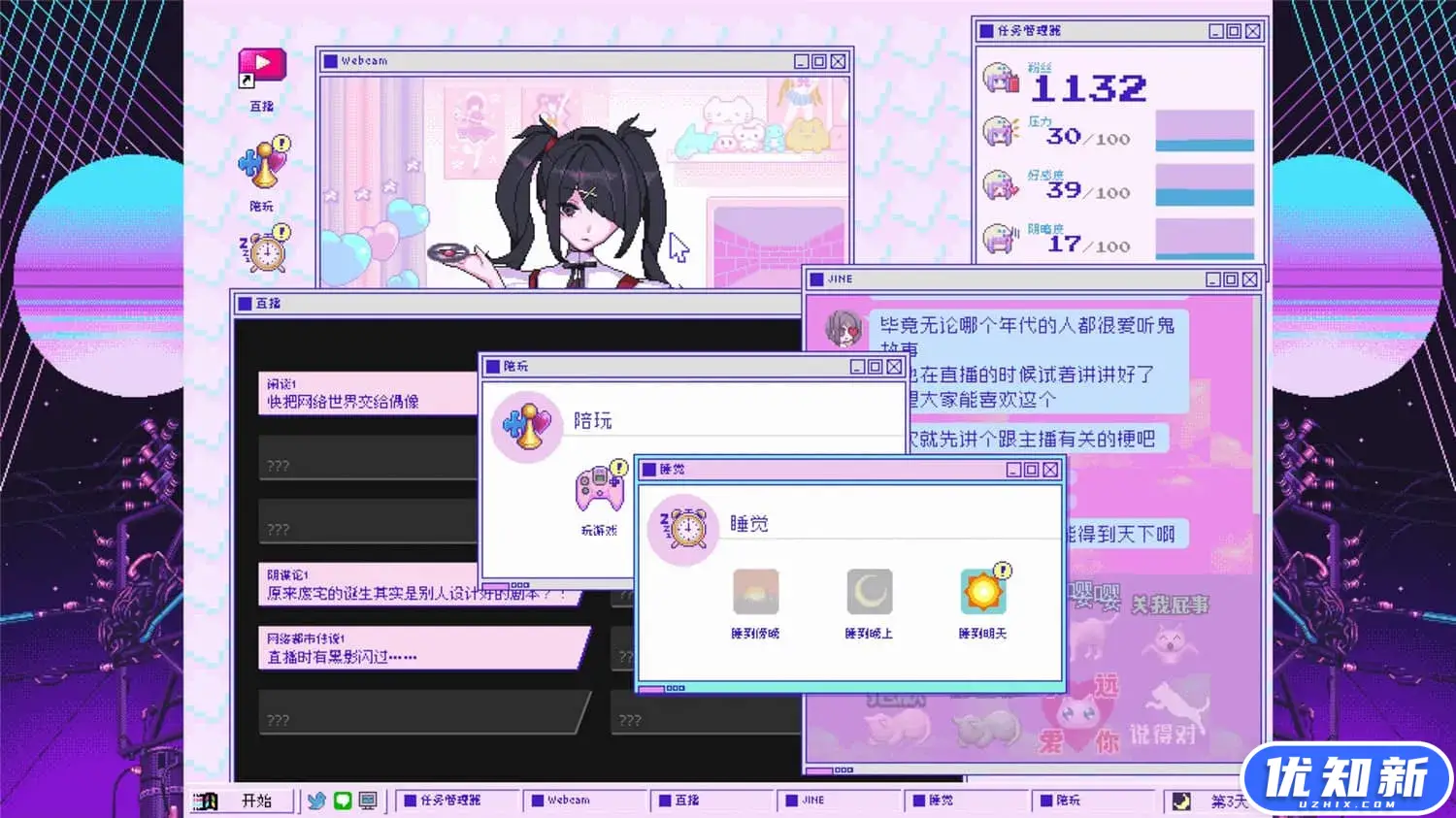 《主播女孩重度依赖》是一款描绘网络天使(直播主)日常生活的多结局ADV。这位名叫“超绝最可爱天使酱”的直播主有着很强烈的想要被他人认可的欲望,玩家需要帮助她进行日常直播,照看有时精神不安的她,喂她吃药,并同时努力增加她的粉丝数量。游戏中,玩家将迎来各种各样的毁灭性结局,而故事是否存在美好结局,就需要您去寻找了。