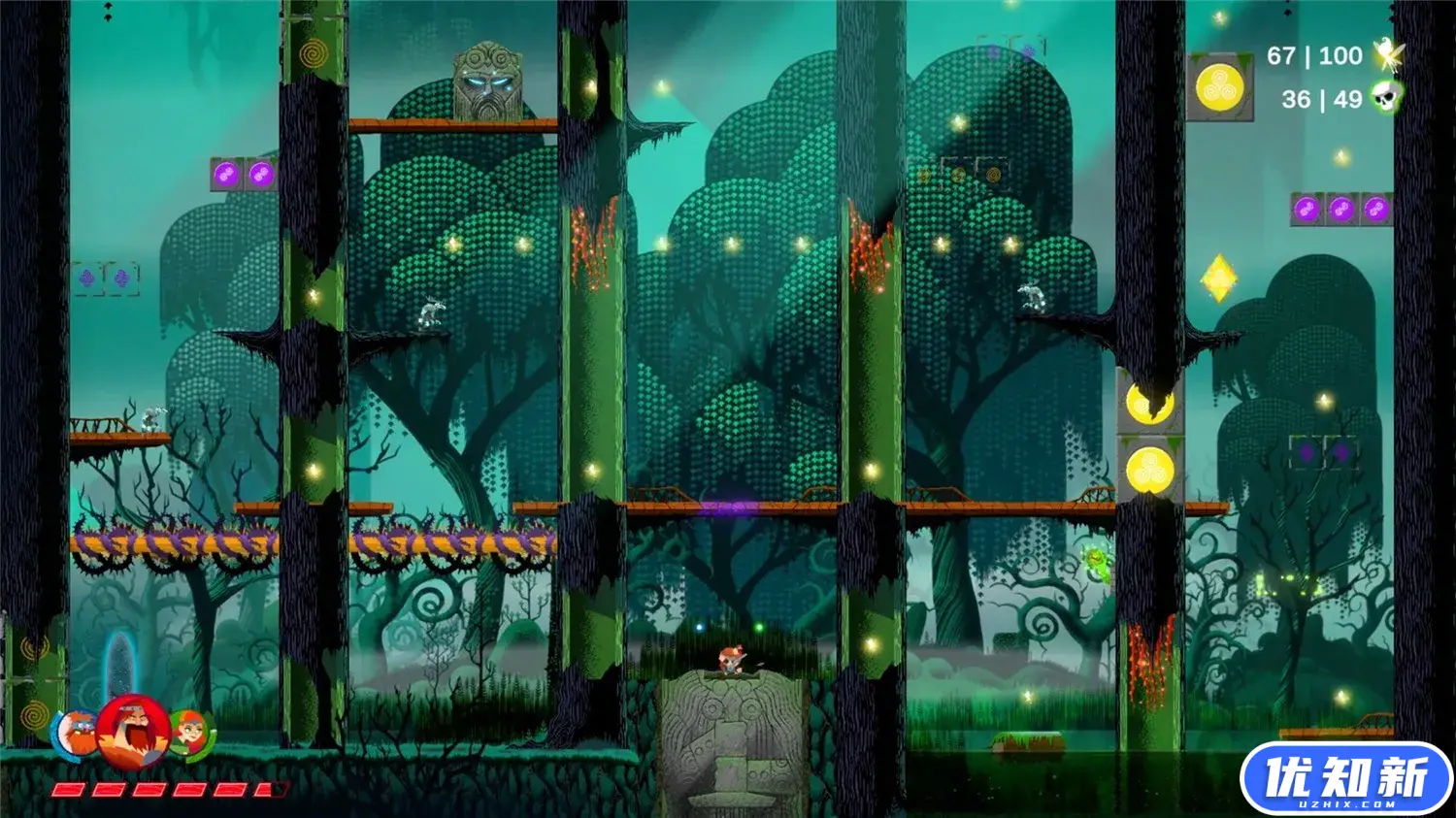 《奥康纳家族与雄鹿之冠》游戏包含快速的,在飞行中的角色交换,华丽的攻击组合和复杂的平台挑战,包装在华丽的艺术作品灵感来自神秘的凯尔特人的民间传说。