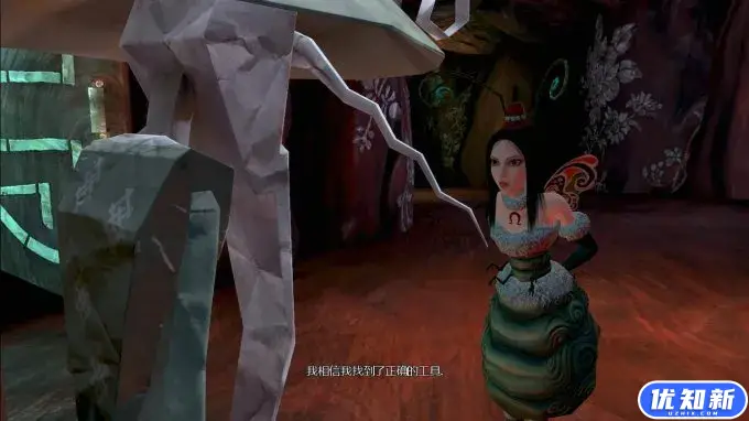 《爱丽丝:疯狂回归》是一部动作冒险游戏。玩家将扮演一名来自疯人院的患者小爱丽丝,她努力在与自己不太正常的精神做斗争的同时,去了解自己的过去。主角将不断地在真实世界和爱丽丝幻想中的世界(也就是所谓的仙境)中穿梭,并使用胡椒磨、小刀以及其他武器与一些幻想的敌人进行近身战斗。敌人的种类包括北欧巨魔、木偶、能动的茶壶以及玩偶生物。战斗的过程中充斥着痛苦的嚎叫声、猛烈的击打声,爱丽丝的身上和附近的地面上都会沾上大片血污。部分敌人可以被斩首,某些攻击也会将敌人炸成粉末。在某个场景中,玩偶生物被爱丽丝削掉了脑袋,瞬间鲜血涌出,脑子都露了出来。