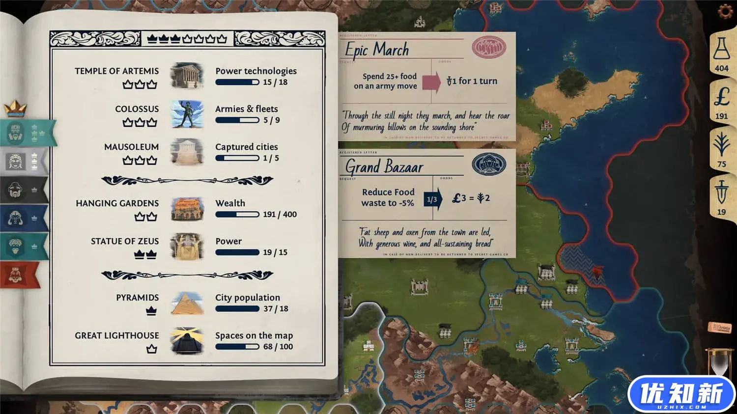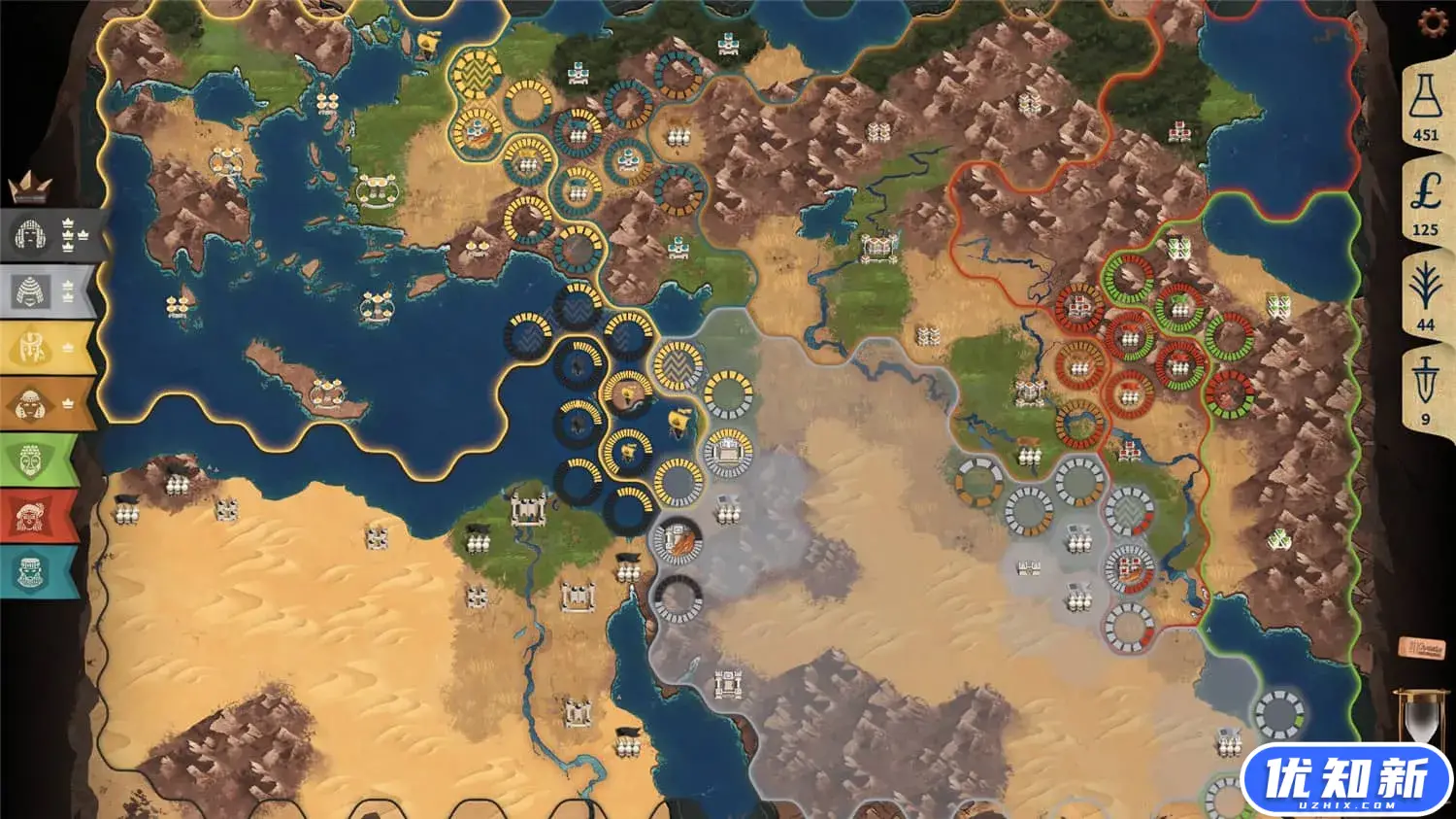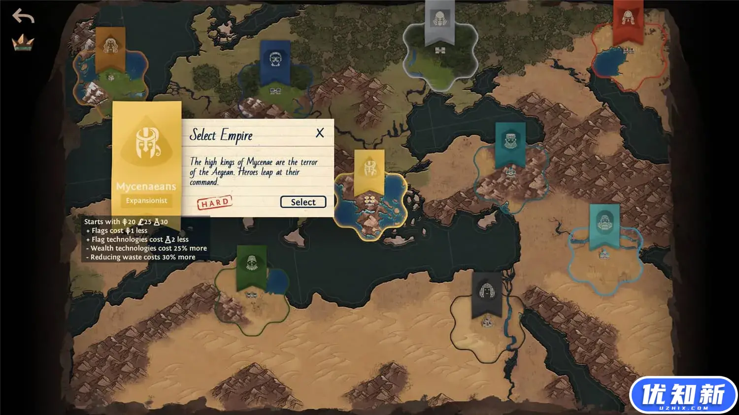 历史之初,青铜时代的王们建立了最早的帝国。在这款独具风格的4X游戏中,为他们的崛起筹谋划略吧。扩展本国边界,在战略要地树立城池,然后组建起军队保卫你的领土。每个回合,你都要从数个机遇中选择一个,达成其目标来获得奖励。随机的取胜条件使得每场游戏都与众不同;可自定的取胜条件,探索各种各样的玩法!
