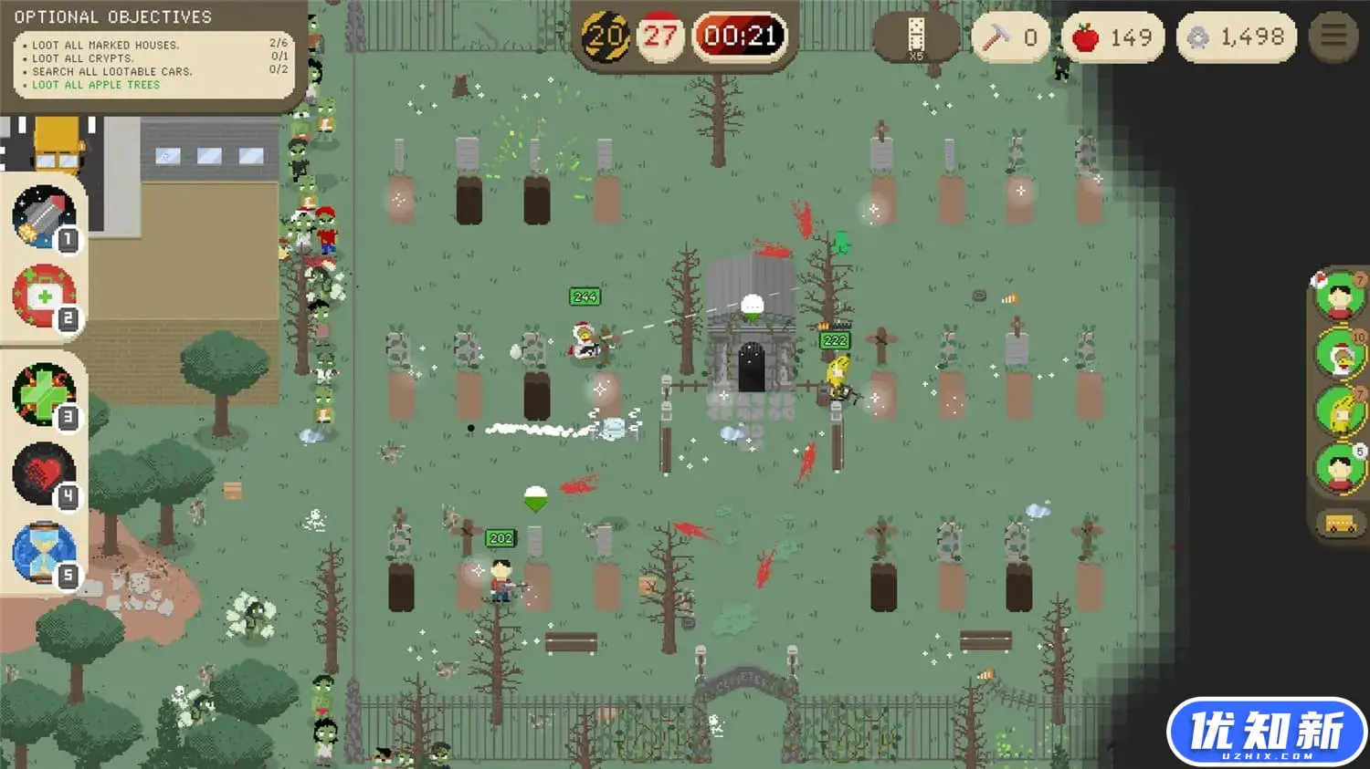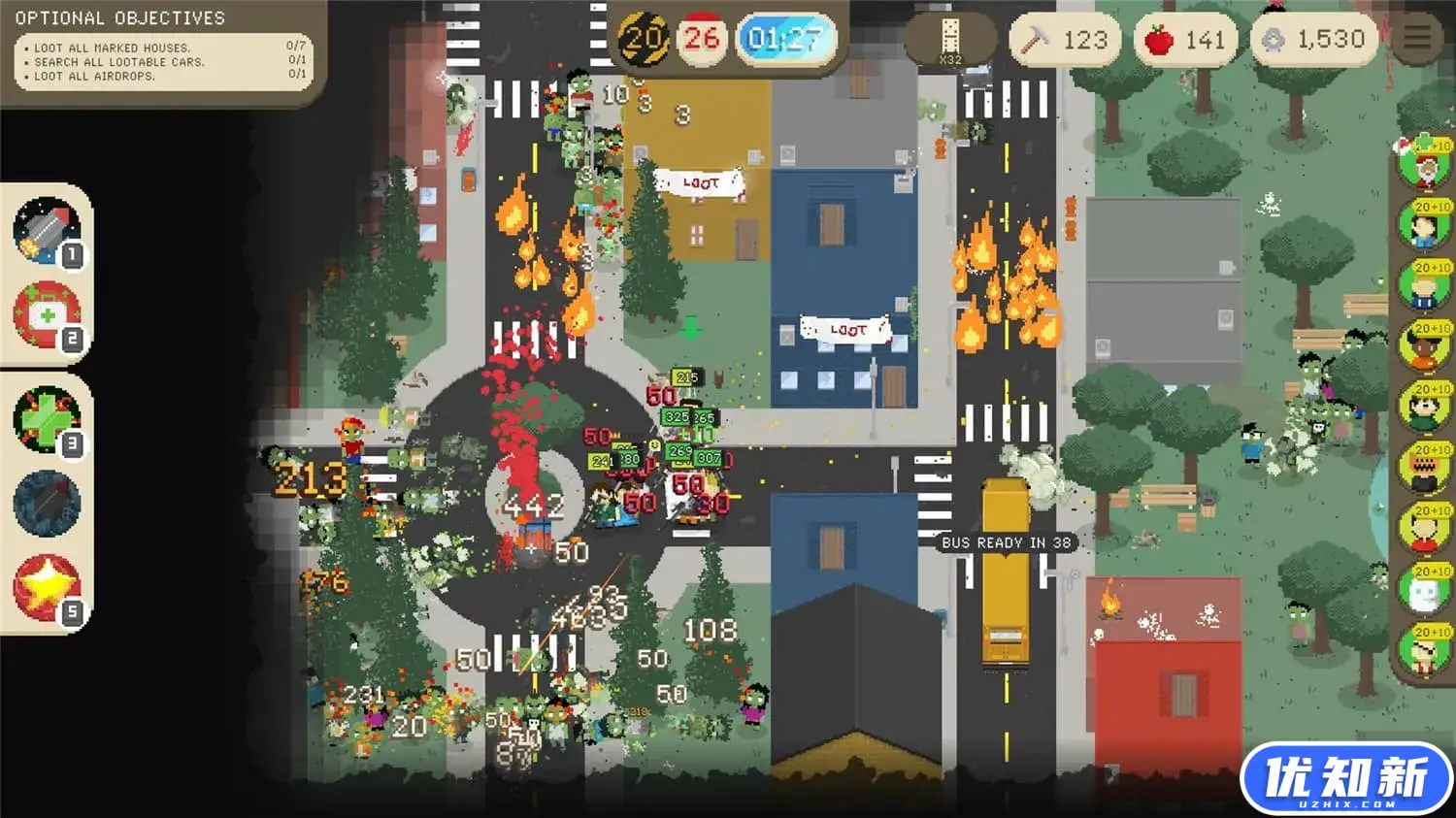 《致命时日》是一款僵尸题材像素风格俯视视角策略rogue-lite类动作游戏,管理和保护一群幸存者并帮助他们阻止灾难,使用大量疯狂的物品、特殊能力和致命武器。特征:60个疯狂的物品,每个游戏都独一无二,包括牙膏30种强大的特殊能力,可以极大地改变战斗的结果三种不同的专业,你可以激活新的能力、幸存者、物体和武器类型25类随机生成属性的武器随机生成的城市和任务50名不同的幸存者,拥有50种不同的能力超过10种不同类型的僵尸三个BOSS必须在最后被击败超过45项成就需要解锁精心制作的像素艺术。
