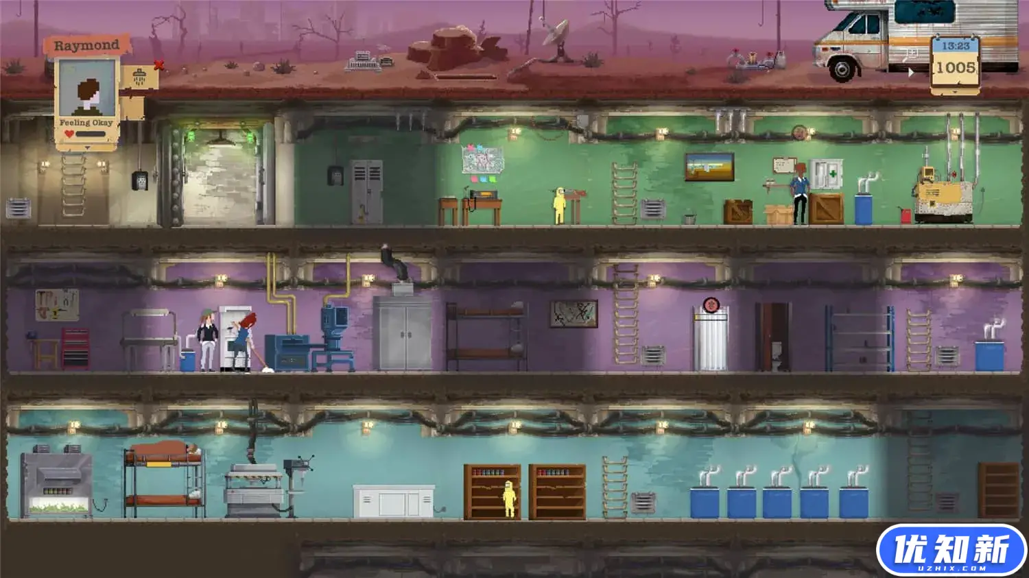 《庇护所》是Unicube、Team 17 Digital Ltd制作发行的生存冒险游戏。玩家需要在荒凉无垠的后启示录时代保护自己的家人并让他们安全的生存下去。为了让家人过得更好,玩家需要建造一座无坚不摧的地下堡垒,但是黑暗中仍然有无数的危险在威胁着自己的安全:野兽、幸存者、高辐射、有限的食物、水和氧气以及幽闭恐惧症……玩家能够坚持多久呢?
