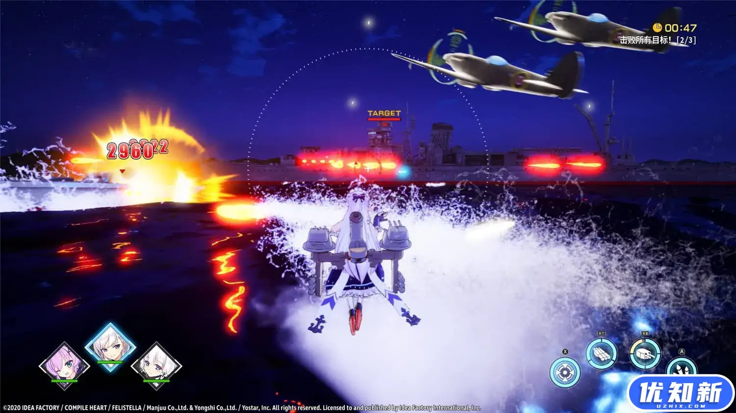 《碧蓝航线:Crosswave》是由地雷社制作的一款角色扮演游戏。主机版《碧蓝航线》将开启原创的全新故事,玩家将通过探索海域地图——与舰娘交流——战斗——获取战斗奖励——探索海域地图的循环来推进主线剧情。游戏中的角色需要通过A点数进行招募,玩家可以使用岛风和骏河以外的舰娘编成最强舰队,展开最大3v3的激烈海战。