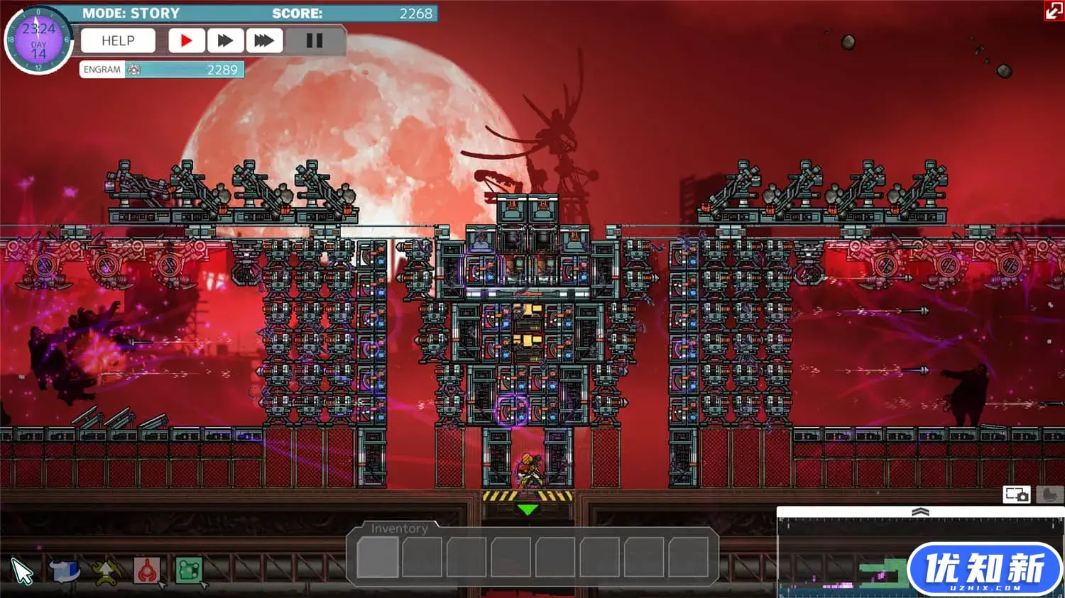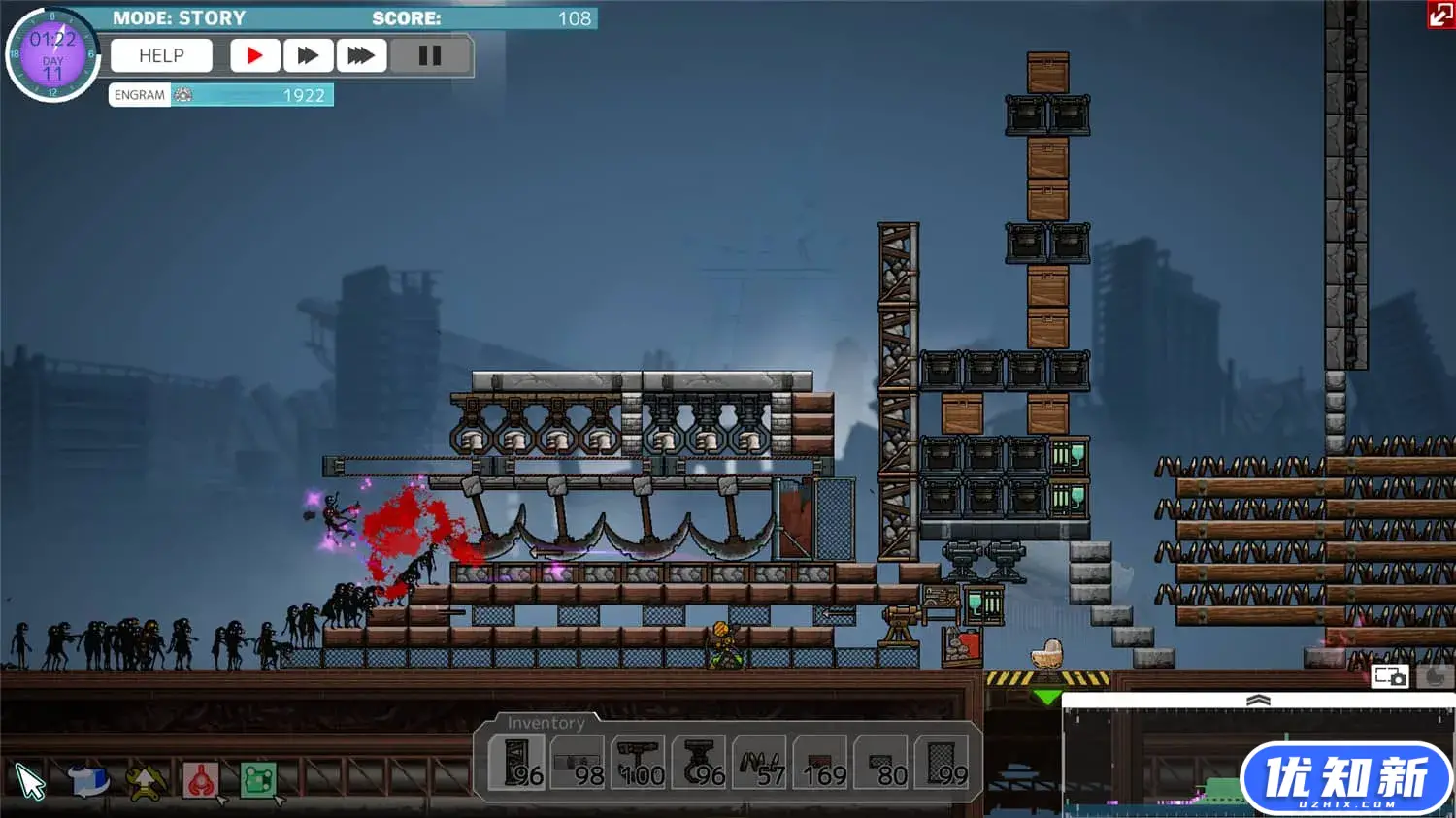 《BARRICADEZ》是一款侧式视角的像素沙盒塔防游戏,为了保护人类最后的火种,守护机器人需要在地下收集素材和物品,在地面进行加工和生产,设置各种陷阱及障碍物,抵御夜间出现的大量敌人的袭击。