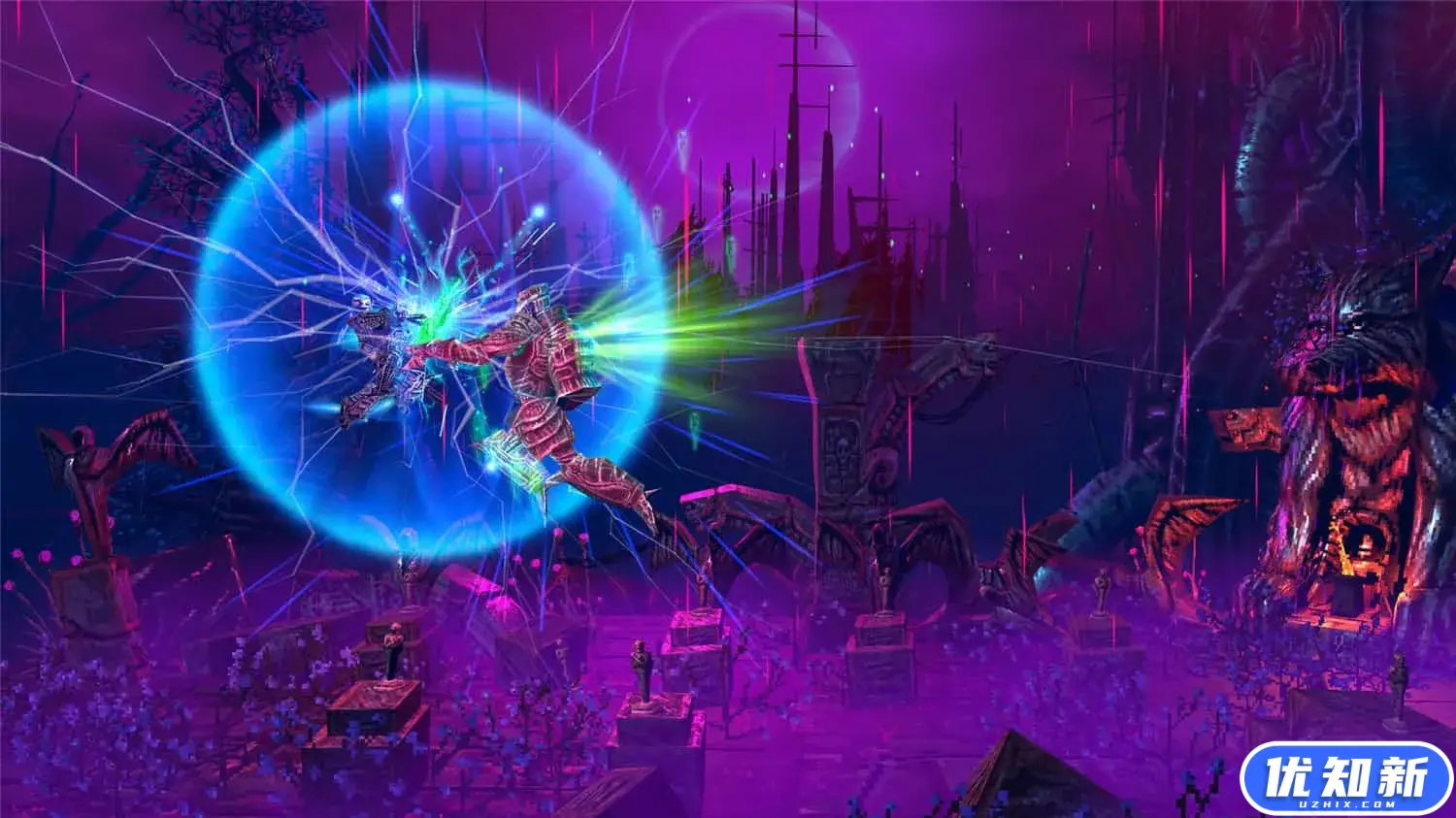 《瓦尔法瑞斯:兽神归来》是一款场面火爆爽快的2.5D横板卷轴射击游戏,也是此前广受好评的《Valfaris》续作。在本作中兽神将驾驶一台凶猛的杀戮机甲,配备各式暴力武器,将可怖邪恶的异星生物和敌人消灭殆尽,在混沌的星际战场完成对弗沃尔勋爵的追杀。