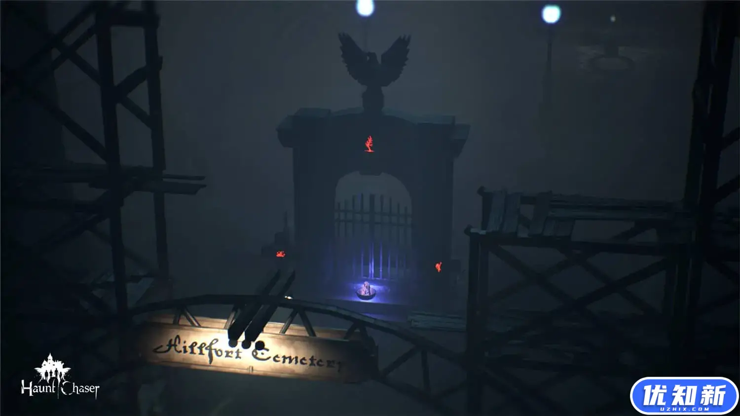 在游戏《闹鬼追逐者(Haunt Chaser)》中进行多人联机游戏,扮演一名猎魔者,使用不同的道具去猎杀恶魔,同时去解救那些陷入恐怖之中的人,暗黑的色调,非常诡异的背景音乐,带给玩家超真实的冒险体验。