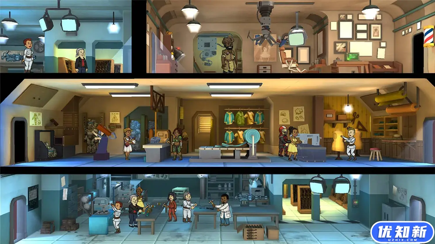 《辐射:避难所》是由Bethesda、Behaviour Interactive制作,Bethesda发行的一款策略游戏,玩家可以在游戏中建立一所属于自己的避难所,使用避难所中的各种设施来获取资源或是派遣避难所里的居民去外界获取素材,本作的要素则是通过抽卡来获取武器。玩家需要提升避难所居民的幸福度,同时还可以让他们造孩子。