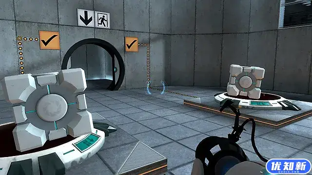 《传送门》是一款以HL2引擎制作的FPS游戏,该作与其他FPS在游戏方法上有很大不同,以往的FPS都是以使用各种武器屠杀敌人为主,而《传送门》在游戏方式上显得非常聪明,他不追求杀戮的快感,也不追求画面的华丽。游戏的关键在于利用空间传送,打开空间入口,完成各种谜题。