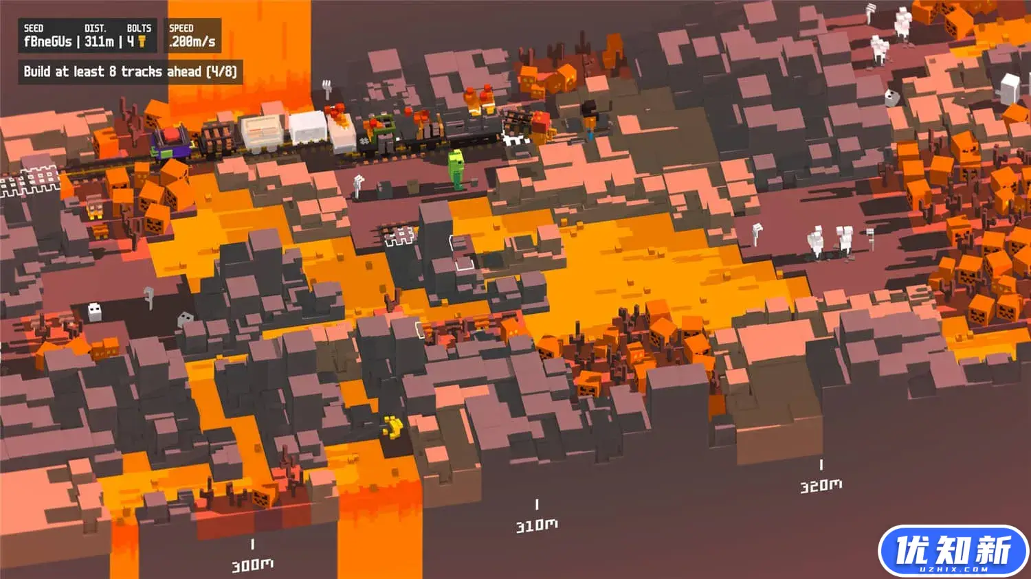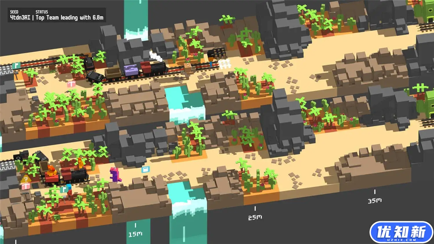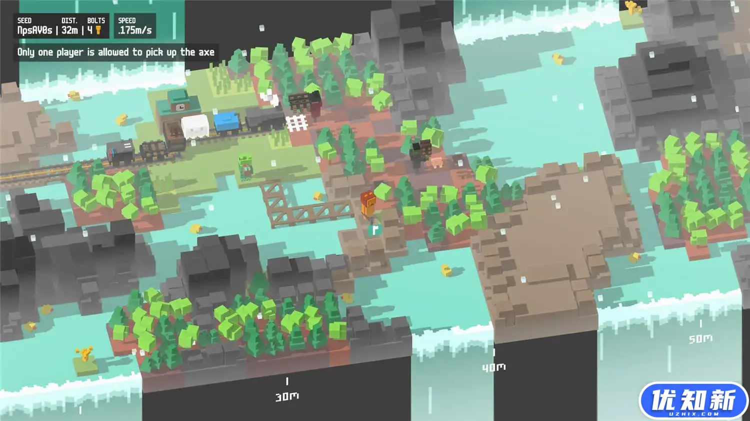 《一起开火车!》是一款主打多人合作、建设铁路的游戏。为了让小火车顺利到达终点,你需要拉上三两好友,在程序生成的无垠像素世界中,协力铺设一条延绵不断的铁路,同时随机应变,努力避免火车脱轨。