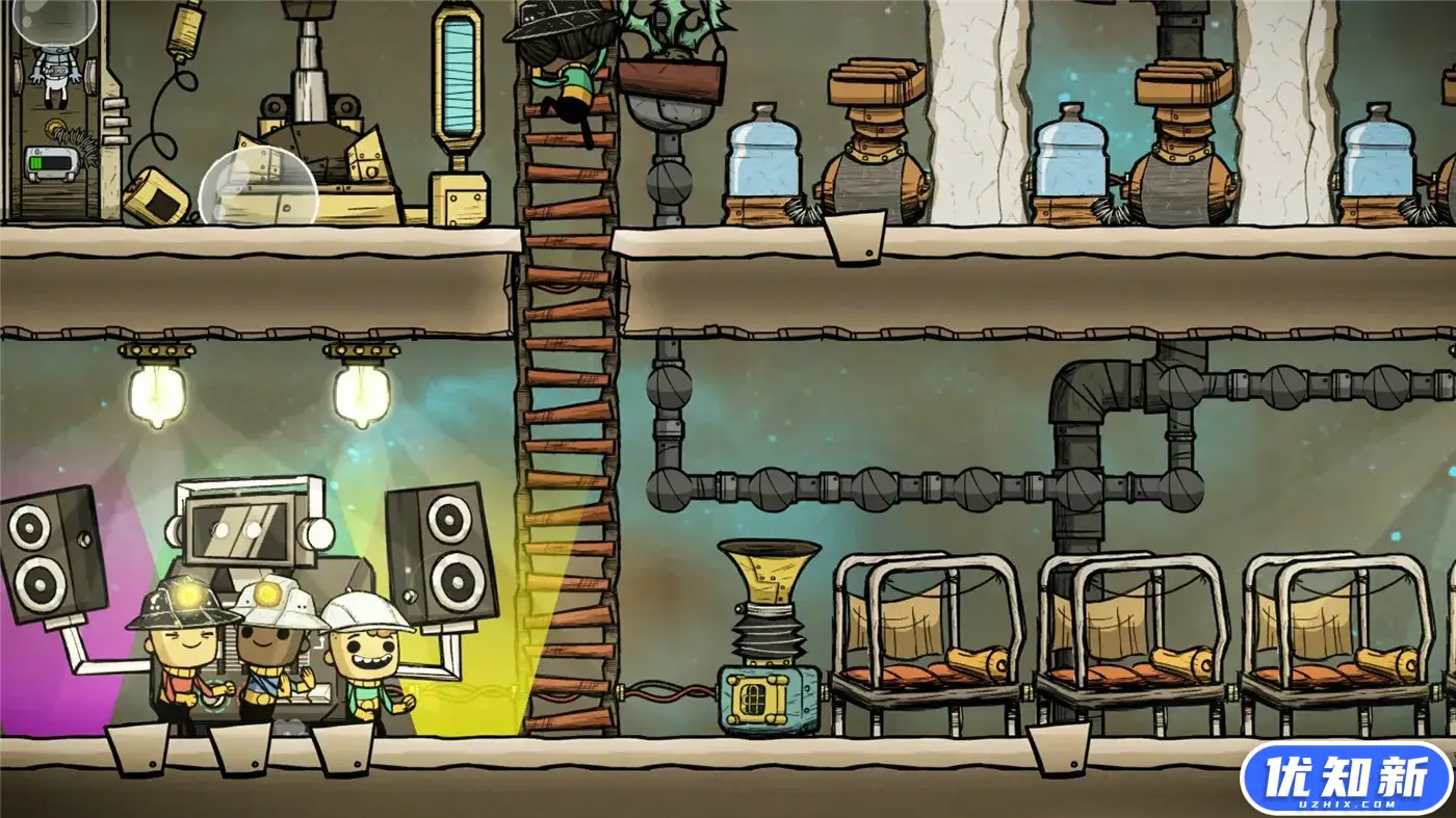 《缺氧》是由开发过《饥荒》的Klei Entertainment所制作并发行的一款模拟游戏,其美术风格也与《饥荒》一脉相承,并同样采用了横版2D布局。这是一个太空殖民地模拟游戏,玩家需要管理你的居民,帮助他们挖掘、建立和维护一个地下的小行星基地。你需要水、食物、氧气和适宜的温度来维持他们活着并满足他们。