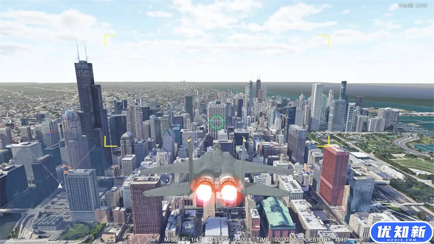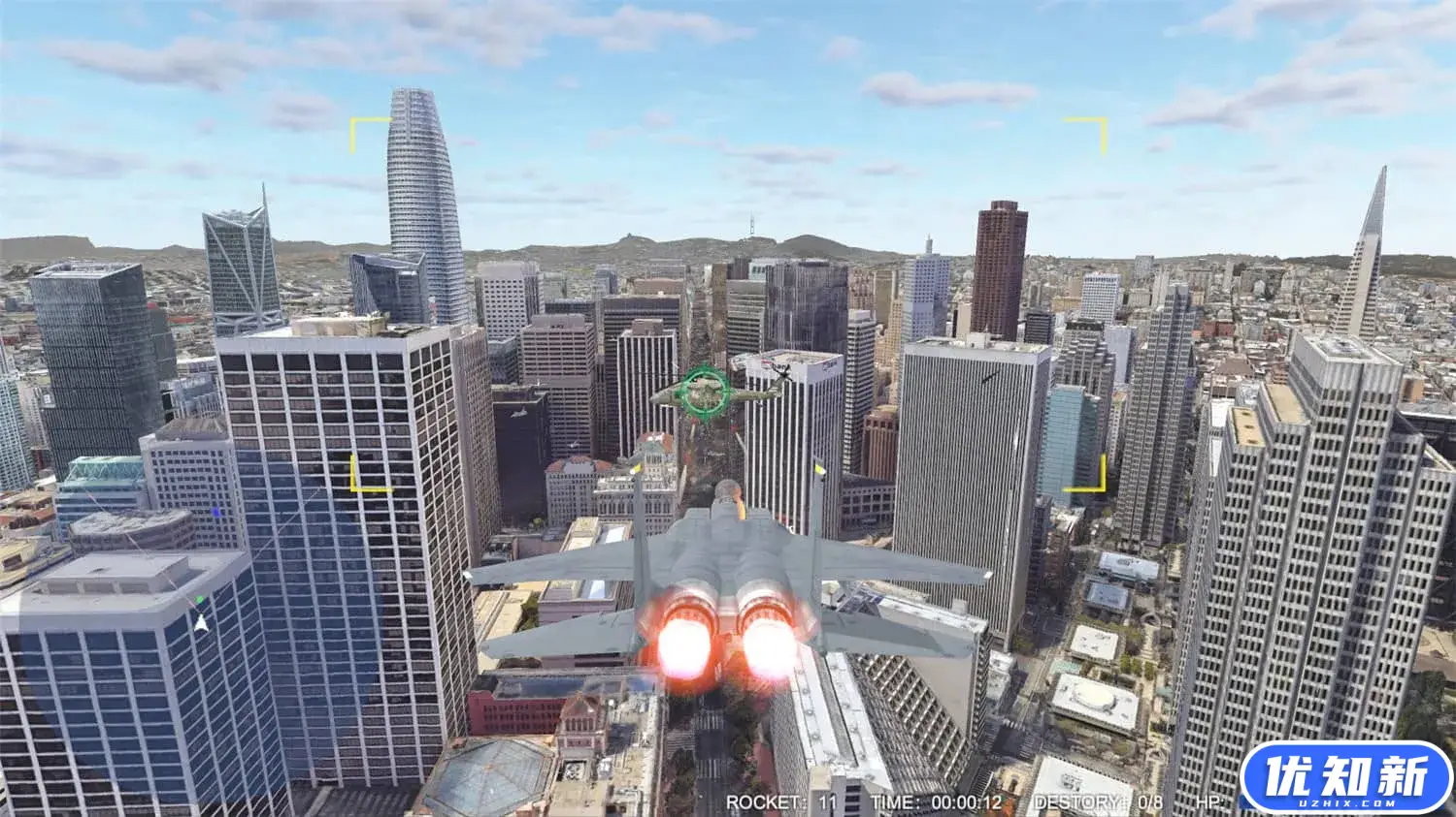 《城市空中决战》是一款街机风格的飞行竞速和射击游戏,游戏中你将驾驶战斗机飞行在真实城市的上空,不但可以在摩天大楼之间进行各种特技飞行,也可以与对手进行激烈的空中竞速和战斗,在快节奏和高强度的对抗中不断挑战自己的飞行和射击技术。